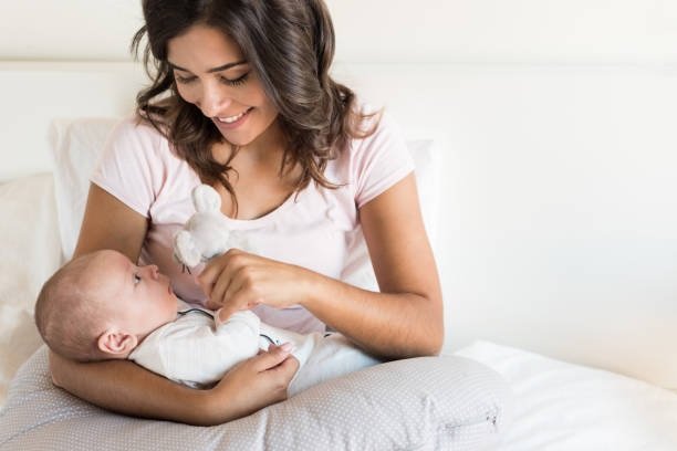 Mama sa bebom i jastukom za dojenje