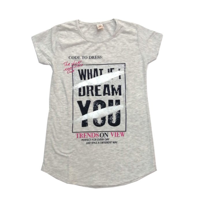 Siva majica za devojčice kratkih rukava sa natpisom – moderna, udobna i praktična.