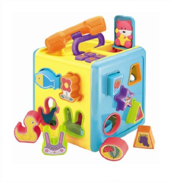 Zabavna i šarena edukativna kocka koja pomaže mališanima da kroz igru uče oblike, boje, životinje i voće! Dete treba da pronađe pravi otvor za svaki oblik – savršeno za razvoj logike, koordinacije i motorike