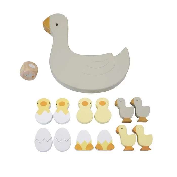 Ova zabavna i zanimljiva igra balansiranja poboljšava fine motoričke veštine i koordinaciju ruku i očiju. Može se igrati individualno ili u društvu. Bacanjem kockice određujete koja figura treba da se postavi na gusku koja se ljulja i da pritom ne padne. Boje su na bazi vode i nisu toksične.