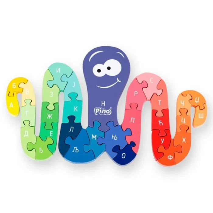 Pino Slovarica Hobotnica je zabavno i kreativno edukativno sredstvo za učenje prvih slova i brojeva do trideset. Proces učenja se vrši slažući puzle u obliku hobotnice koja na jednoj strani sadrži slova a na drugoj brojeve.