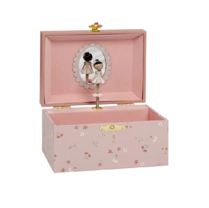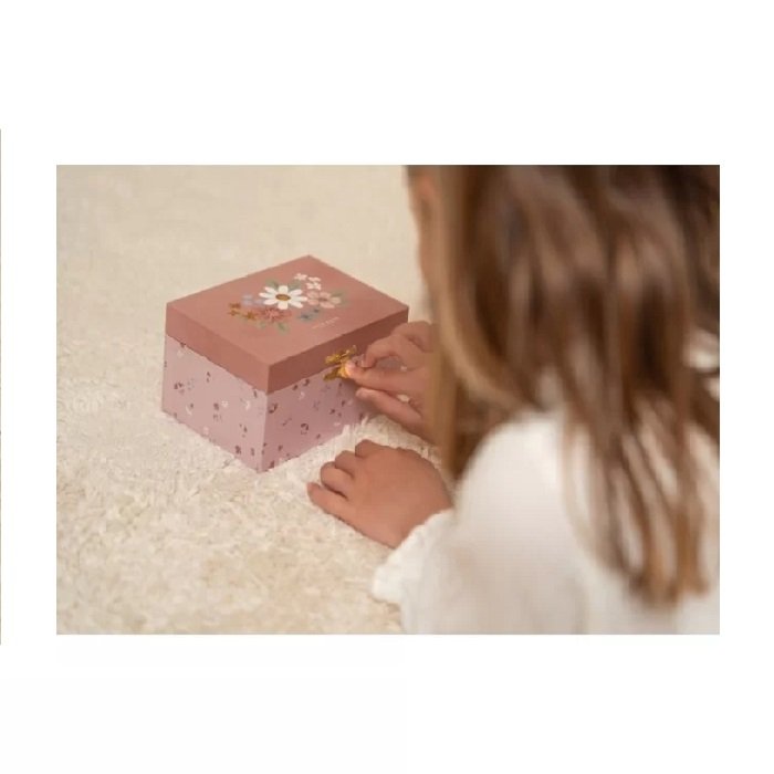 Muzička kutija za nakit ukrašena je prepoznatljivim dizajnom Little Pink Flowers, a unutar nje krije se i malo ogledalo u obliku cveta, dodajući još više šarma ovom prelepom komadu.