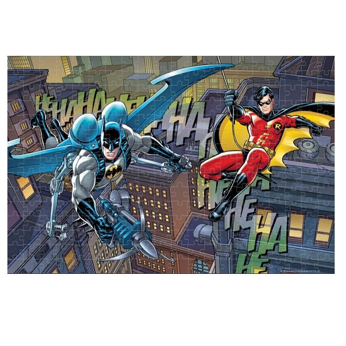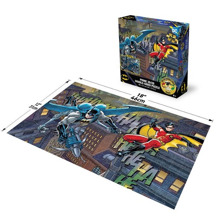 Zaronite u akciju iz srca Gothama uz neverovatnu 3D/2D dvostranu slagalicu sa omiljenim herojima — Betmenom i Robinom! Ovaj jedinstveni set donosi pravo superherojsko iskustvo, jer u jednoj kutiji dobijate dve slagalice: dinamičnu 3D sliku koja oživljava borbu protiv zlikovaca i klasičnu 2D verziju za tradicionalno slaganje.