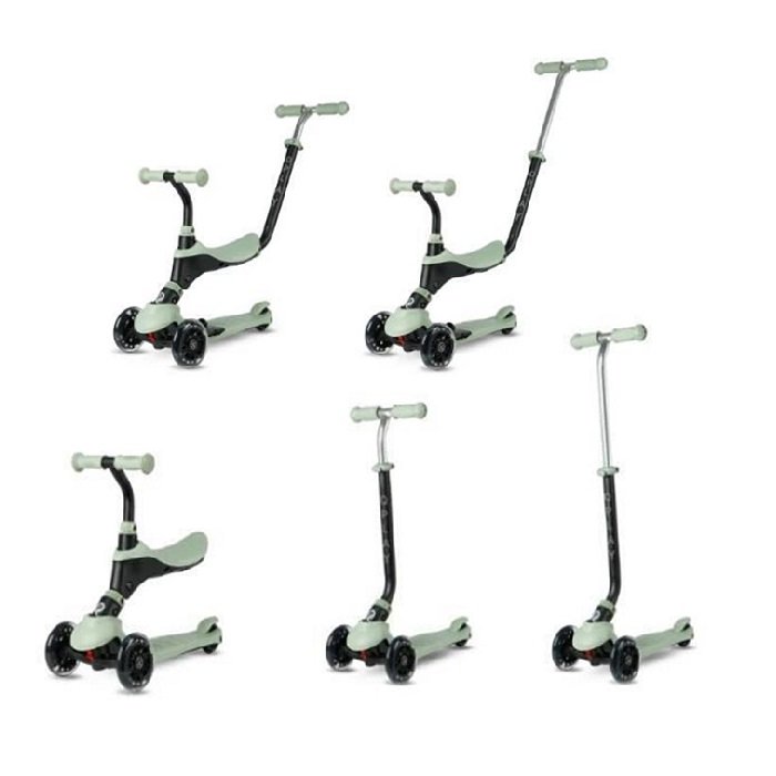 Q Play 5 u 1 trotinet je fleksibilna igračka koja se može koristiti u pet različitih modova koji ga čine zabavnim i udobnim za vožnju. Stabilan dizajn sa tri točka sa bezbednim mehanizmom naginjanja za upravljanje i unapređeni silikonskim rukohvatom na upravljaču. Sedište koje se može skinuti i podesiti prema potrebama deteta.