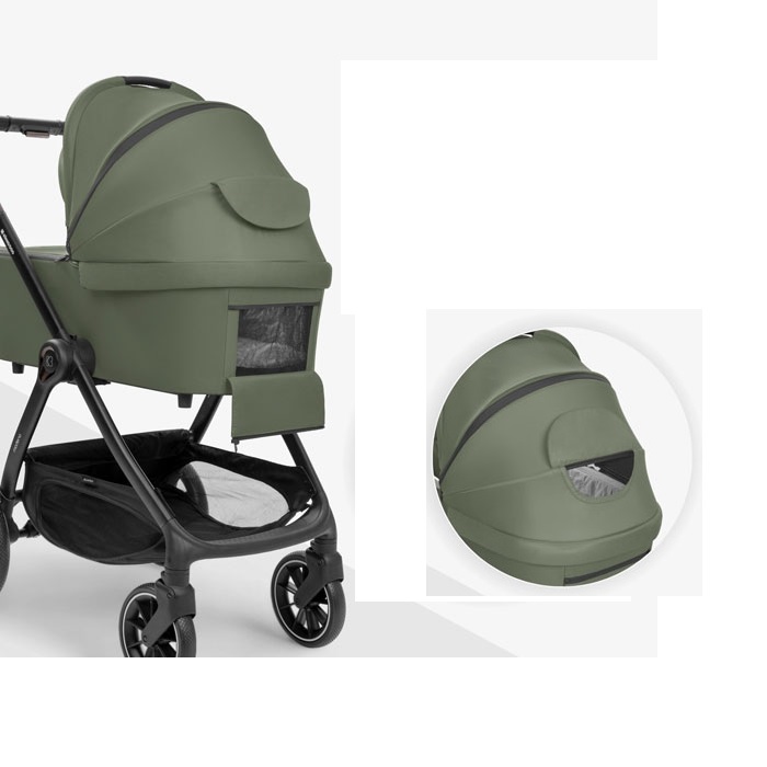 Kolica Modena 3u1 sa i-Size autosedištem i tvrdom korpom u boji Army Green idealan su izbor za roditelje koji žele spoj funkcionalnosti, sigurnosti i udobnosti za svoje dete. Ovaj praktičan set obuhvata sve što vam je potrebno od rođenja pa sve do 22 kg – prostranu ravnu korpu, sportsko sedište i i-Size auto sedište.