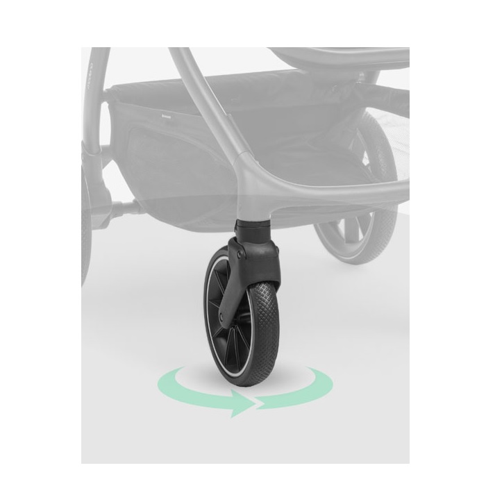 - Prednji točkovi sa mogućnošću rotacije od 360 stepeni i ugrađena suspenzija.